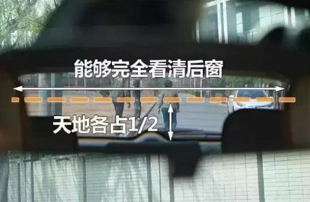 2、右后视镜调整:由于驾驶座在左侧,驾驶人对车身右侧的情况较难掌握,因此右侧后视镜在调整上下位置时,地面面积应大些,约占镜面范围的2/3,左右位置则同样调整至车身占据镜面范围的1/4。