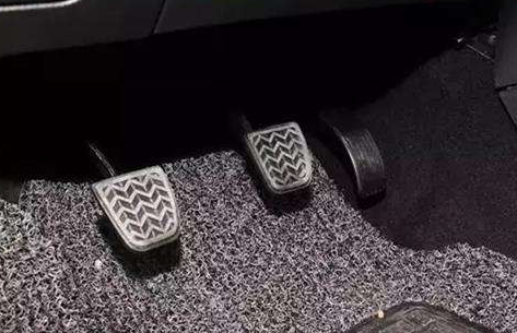 自动档只有两个踏板,由左至右依次是刹车踏板、油门踏板。只用右脚控制。