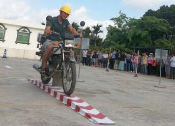 普通三轮摩托车、普通二轮摩托车和轻便摩托车考试项目一般为桩考、坡道定点停车和起步、通过单边桥,并有警察和考试员进行督考。