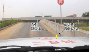 1. 行驶中初步摆正车身左右位置打右方向灯进入考试,像靠边停车一样,用车头右铆钉投射点触碰车道右边线(右边线约切进车头三分之一,即55cm)。