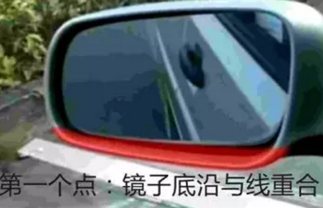 所以大家平时练车时候慢慢摸索,是镜子下沿靠前、靠后,还是刚好在线上时选择右打死方向。