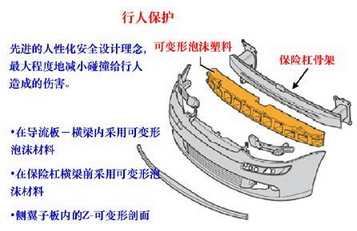 之前在网上看到一些车辆的保险杠是泡沫做的,以为这是偷工减料。其实没错,以前确实是用钢铁的,但考虑到出事故的人群来说,这是多么的可怕。改换成塑料和泡沫的保险杠能缓解对行人的腿部,尤其是小腿的撞击力,配合前杠的合理设计,减少对行人被撞时的伤害程度。如果确实很差的保险杠会对车子的部件造成很大的伤害。