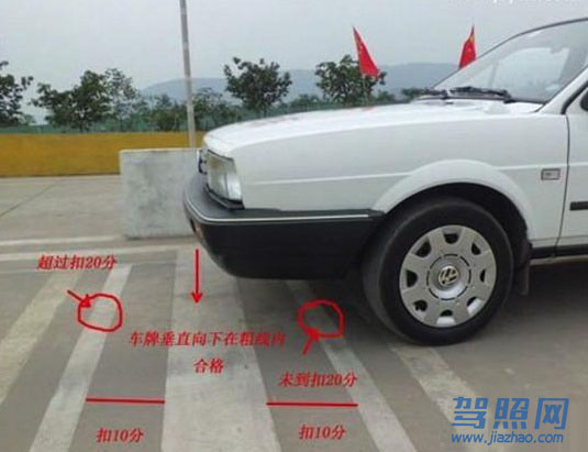 2、车辆停止后,汽车前保险杆或者摩托车前轴未定于桩杆线上,且前后不超出50厘米,扣20分;