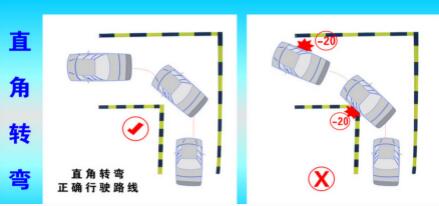 2、进入直角弯前,让车在路两边线内尽量远离突出点。