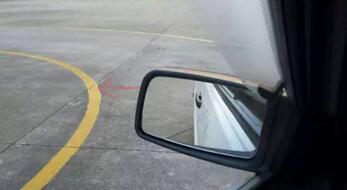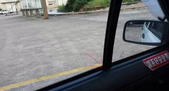 4、方向回正后向左探头靠近玻璃窗位置,看线移到竖杆下端角头时,向右打一圈方向,保持线在角头行驶(具体因人身高点位前后另作设定)没有变化方向就在一圈位置走,当线往后移时方向往右拉,当线往竖杆上面移时方向往左拉,调整到原位置又保持在一圈位置走。