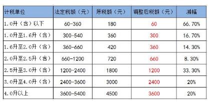 1.0升及其以下排量的汽车车船税是60元至360元;