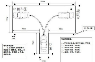 向左后退时,通过左后视镜观察车身与库线之间的距离和行驶路线,当 看到车身与左库直角处大约30公分开始向右慢慢回方向。