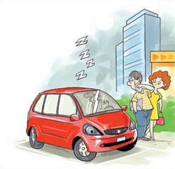 提示:车里很热,上车的第一个动作应该是打开车窗,启动空调的外循环,排出热气。