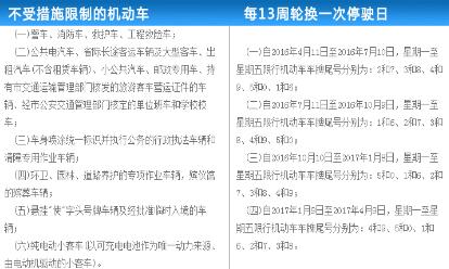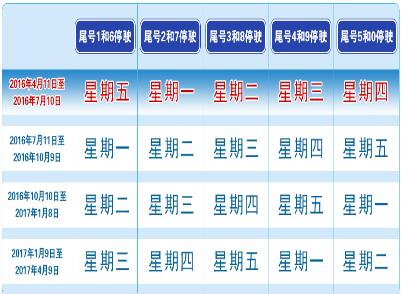 2016年10月10日至2017年1月8日,周一至周五限行尾号分别为:5和0、1和6、2和7、3和8、4和9;