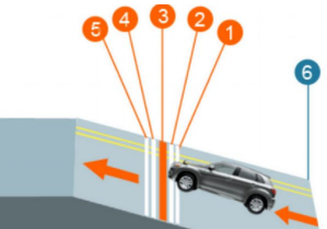 2、观察左后视镜,当1线和左后视镜下沿与眼睛成一线时,踩下离合、放开油门,当3线中心和左后视镜下沿与眼睛成一线时,踩刹车、拉紧停车驻动器,停车到位。