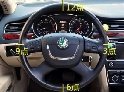 第二,两眼平视前方,左手轻握方向盘左上方(货车按钟表910点处),右手轻握方向盘左上方(货车按钟表34点处)且两手放松自然下垂,此时,左手和右手大拇指应自然伸直靠于方向盘轮缘上部,其余四指应由外向内轻握。