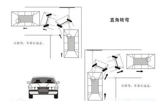 1、转弯前,一定尽量靠外侧行驶。等车头即将到达对面边线时(约50公分-70公分)开始向内打方向(注意不要打急了),看前面的同时再观察后视镜,感觉车的中部快要过直角的顶点时则慢慢回方向,再慢慢将车头修正。