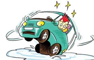 在光滑冰雪路面行驶时,加油要轻、缓,加急了车轮空转打滑、方向失控。