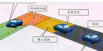 1、进入直角转弯前,放慢车速,尽快调整车身与右侧边线的距离。前进过程中,通过右侧后视镜观察车身与右侧边线的距离,做适当调整。