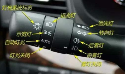 5.检查灯光旋转按钮是否关闭,拨一下远近光灯杆
