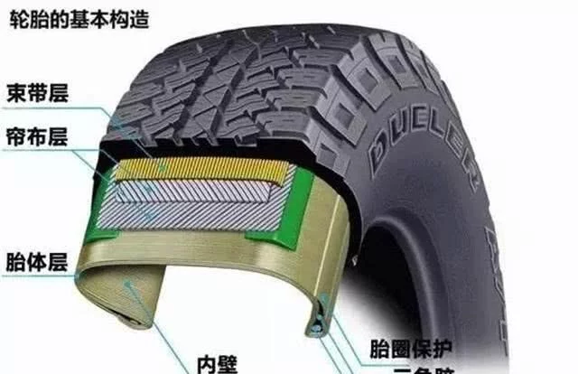 众所周知,轮胎大多是橡胶制作的,但橡胶的强度往往不够承受压力,因此厂家就会在轮胎正面用钢丝作为加强件,一条条钢丝掺杂其中,这就好比建造房屋时,钢筋混凝土里掺杂些钢筋;而轮胎侧面则布置的是一些帘线,该构造层叫做帘布层。因为汽车行驶时,轮胎侧壁要一直承受变形以及回弹的状态,与地面接触的胎壁变形会更大,其他部位受力相对较小,随着轮胎向前或者向后滚动,侧壁一直变形恢复,而帘布层无疑是提供更好的柔韧性。