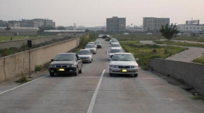 快到大门时,右脚放到制动上,观察左边道路情况。如果有车辆过来,就要刹车,踩死离合,推一档,等候。如没有情况,就出校门,当车头盖住本侧道路中间的水泥线时,立即右转一圈,马上回直,加油门,车速起来。然后松油门,踩死离合。挂三档,慢松离合,冲油门,踩离合,挂4档。接着松离合,油门踩到底,冲速度,松油门,踩离合,挂5档,轻压油门前行。