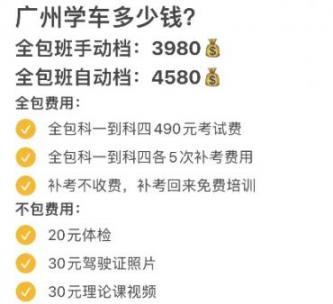 总之,在广州学车的小伙伴,收费要问清楚,费用是不是包过、补考费啥的),收费太低不靠谱,可能会有其他乱七八糟的收费要问清楚。有的驾校价格是可以谈的,一定要多了解一些驾校做对比。