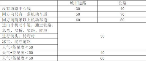 ①最低速度:同向两道100,60; 同向三道110,90,60; 同向四道110,90,90,60 。