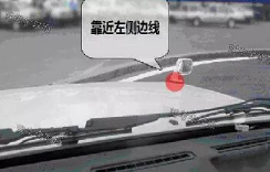 2.保持姿势,观察左前角与右侧边线是否一直重合,若发生偏离则微调方向盘确保重合。