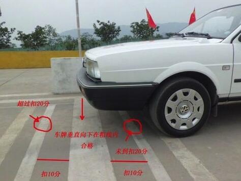全国考场有的有杆子,有的没杆子。有杆子的教你们看到车头和杆子一条线停车,因为满分就是20cm左右的距离,这是在你座椅靠背都调节好的情况下且多加练习才能判断的。车头和杆子的误差一指头,车身误差20cm。