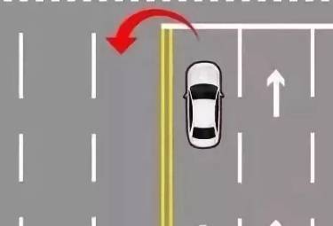 当肩膀与人行横道末端平齐时向左打死方向,不踩离合刹车油门,行驶至右方或中间车道,回正方向关闭转向灯。