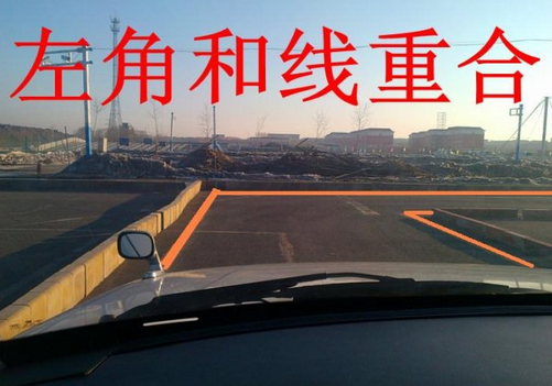 向左打死后盯着左后视镜看,因为车头通过后就不会压外线,如果觉得后轮可能会压角,可以松一圈方向确保过关。