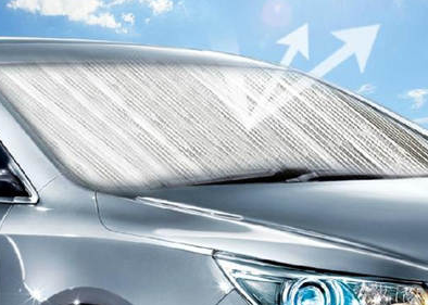 3、铝箔遮阳挡,可以反射紫外线,分为气泡与横纹两种,后者效果略好,总体价格在8元至35元不等。这种遮阳挡可以展开,用吸盘吸在前窗或后窗内。一般情况下彩色图案向外放置,这样主要是为了美观,在非常炎热的季节,则最好将铝箔向外,可以更好地反射阳光。不用时可以折叠起来,不会占用过多空间。