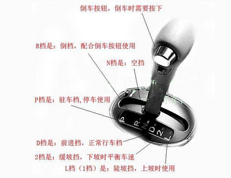 R是倒车档、P是停车档、N是空档、D是一般的开车时用的档,其中基本分D1,D2和D3。代表:D1:最高档等于手动档的1-2档(一般用在爬坡)、D2:最高档等于手动档的3-4档(一般用在道路拥挤走走停停的时候)、D3:最高档等于手动档的5-6档(最常用的档位)。