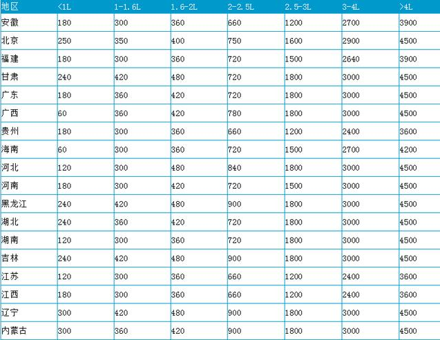 车船税的计算方法是一样,全国各地按照排气量和车型计算车船税。排气量越大,车船税越高。车船税的新标准具体的数额如下: