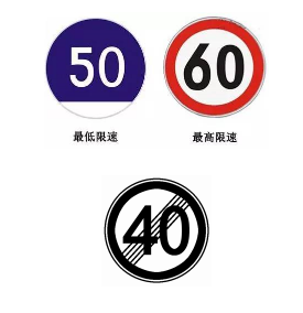 红色最高限速,蓝色最低限速都很好理解,灰色限速标志意味解除限速,这个经常困扰着没什么经验的学员。
