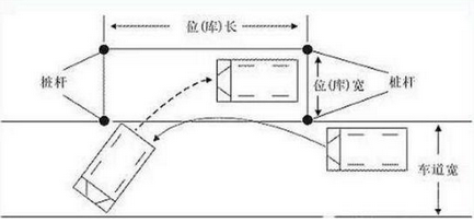 当驾驶视线与车辆引擎盖右前角行程的直线在参照车左轮之后,保证车头安全进入,从右后窗中观察参照车辆露出面积不足1/4时,可保证车尾能进入。
