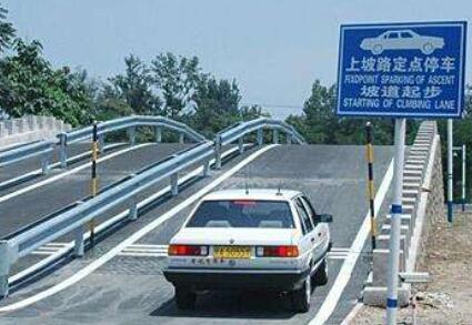 坡道定点最关键的就是控制好离合和刹车,不要中途熄火、溜坡,否则必挂。在起步的时候左脚控制好离合,右脚踩死刹车,然后慢慢松离合至引擎发抖,再松刹车。离合不能抬的太快,否则就会熄火,也不能还没抬到位就松刹车,否则就会后溜。准确把握半联动状态,是顺利起步的关键。同时,不要忘记起步时打左转向灯。