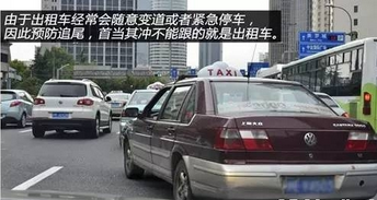 不紧跟出租车!不少出租车司机看到路边有招手的乘客会立即停车上课,如果正好紧跟在它后面,很容易追尾。