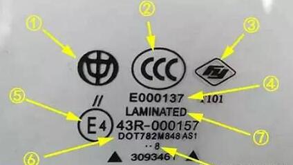④汽车玻璃生产厂家编码,图中E000137代表的是福耀集团长春有限公司。