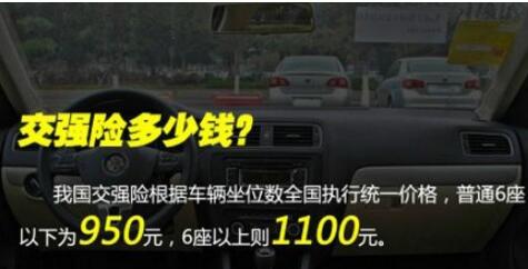 交强险的基础费率共分42种,各种车型保险费率各不相同。但对同一车型,全国执行统一价格。对于最常见的6座以下的私家车,新车第一年的交强险是950元。需要车主注意的是交强险和车船税虽然可以同时交,但是期限不同。车船税是每年12月31号为截止日期,而交强险为从交纳保险那一天开始算起,保期一年。假如你是5月初买的车,那么你只要交7个月的车船税,但是交强险是投保一年到下一年5月份。
