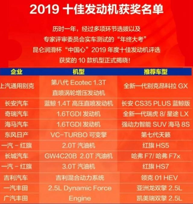 每一年,全世界各国都会对不同品牌和不同车型的发动机进行一次综合评价,然后再进行排行。在发动机排行榜单当中,比较有名的就是沃德十佳发动机排行榜,在几年前,国内也有了发动机排行榜单,名为“中国心”,最近,2019年“中国心”十佳发动机排行榜正式发布,多款国产发动机上榜。