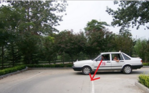 打分标准:车轮触压突出点,不及格;车轮触压路牙一次, 扣20分;借助倒车,扣10分。