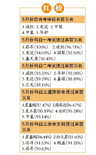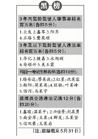 记者注意到,在厦门驾校5月份的排名中,表现优秀的中骏、路路新、国聚、和胜、嘉骑五家驾校各加了5分;永旭辉等10家驾校,被扣去5分;路安达等5家驾校被扣去10分;鑫骏、兴佳景、信双豪、南金岸和群发等5家驾校,则被扣去20分。