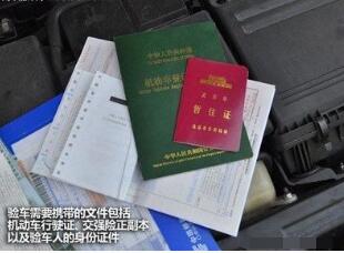1.行驶证. 2.交强险副本原件. 3.车主身份证或代理人身份证原件. 4.三角警告牌,灭火器 5.足够的人民币. 6.车.