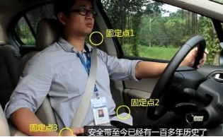 使用安全带的第一步是调节好安全带肩部的位置。安全带位置调节机构位于B住附近,可以上下移动使三点式安全带适应不同身高的驾驶员。