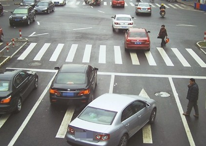 机动车通过有交通信号灯控制的交叉路口时,在划有导向车道的路口,应当按所需行进方向驶入导向车道。如果是直行车,进入了左转或右转车道,电子眼同样会马上进行抓拍。