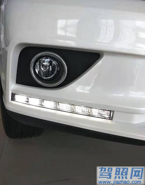 镶嵌的15颗LED整齐排列在大灯周围,下边的10颗LED灯是小灯。