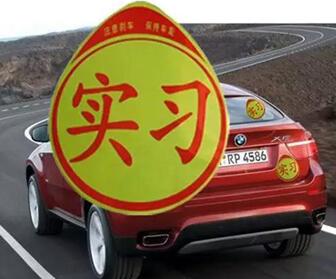 新手上路一定要记得在车尾贴上实习标志,这样不仅可以不被罚款,更重要的是可以提醒其他车辆。