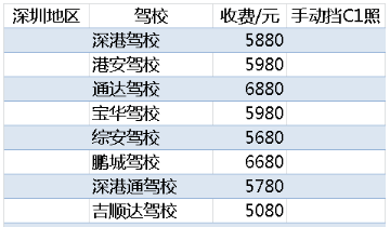 深圳考驾照价格表