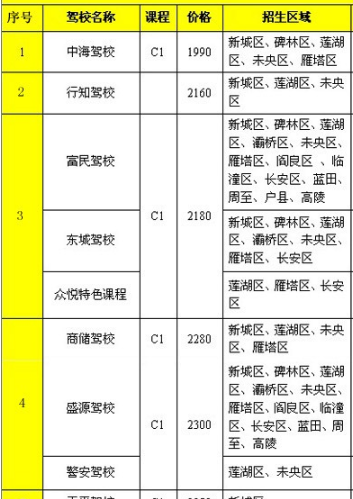 西安考驾照价格表