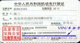 3. 机动车行驶证上,新的行驶证在“车辆识别代号”一栏一般都打印VIN码