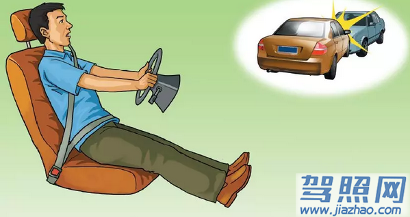 通常,车辆的侧面碰撞安全防护性能明显弱于正面碰撞安全防护性能,所以车辆撞击无法避免时,驾驶人应当尽力避免侧面碰撞。当与前方机动车或障碍物发生正面碰撞已不可避免时,应迅速采取紧急制动,减轻碰撞力度。若与对向来车不可避免地发生正面碰撞且碰撞位置在正前方时,驾驶人要迅速离开转向盘,往副驾驶位置躲避,迅速将两腿抬起。若发生撞击的位置不在驾驶人一侧或撞击力量较小时,驾驶人应紧握转向盘,两腿向前蹬,身体紧靠座椅。