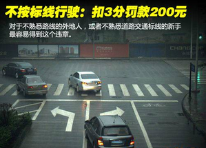 不按道路标线行驶这种违章一般多见于外地车辆因为对道路不熟悉,在路口要直行时却在右转车道上强行直行,对于这种违章的处罚是扣3分罚款100元。