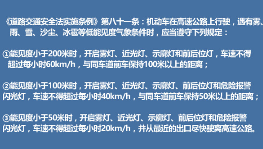 雾灯在我们夜间行车的时候必须打开,另外更是毫无疑问要在大雾天及其它能见度低下天气下使用的灯,按道路交通法规定是,当雨雾天能见度小于200米时,机动车就应当开启雾灯。